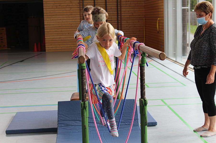 Sie sollten ihm helfen, seinen Rucksack wieder zu finden. So machten sich die flinken Spürnasen auf den Weg und erkundeten das Schulhaus vom Keller bis in den ersten Stock. Auf ihrem Weg hatten sie zehn Aufgaben zu erfüllen: So durften sie z.B. im Lehrerzimmer eine Hand kopieren, im Putzkammerl aus einem Schüler eine Klopapiermumie machen, im zukünftigen Klassenzimmer ihren Namen an die Tafel schreiben und im Werkraum Nägel in ein Holzstück einschlagen. Die schwierigste Aufgabe galt es dann in der Turnhalle zu bewältigen: Hier mussten sie viele Stationen durchlaufen, ohne von Krokodilen gefressen zu werden. Letztlich haben die kleinen Detektive dann unter einem riesigen Tücherberg endlich Pippos Rucksack gefunden. Die darin enthaltenen Süßigkeiten und die Urkunde wurden freudig verteilt. Nach einem gemeinsamen Abschlussfoto haben wir uns verabschiedet und freuen uns jetzt auf einen spannenden Schulstart im September!