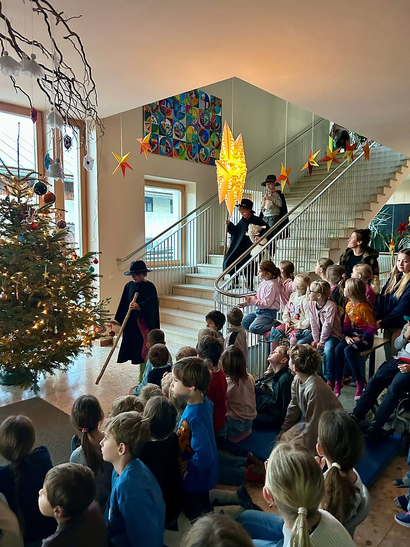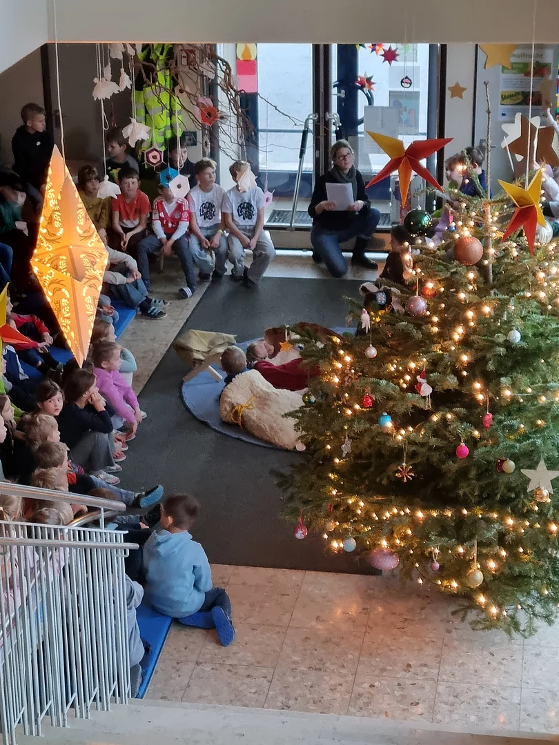 In unserer Schule ist der Advent eine ganz besondere Zeit, die mit Freude, Gemeinschaft und dem Zauber der Vorweihnachtszeit gefüllt ist. Jeden Montag versammelten sich alle Kinder um unseren festlich geschmückten Weihnachtsbaum, um gemeinsam das Lied „Das Licht geht von Hand zu Hand…“ zu singen. Es ist ein Moment der Verbundenheit, in dem jeder ein Stückchen Licht weitergibt.