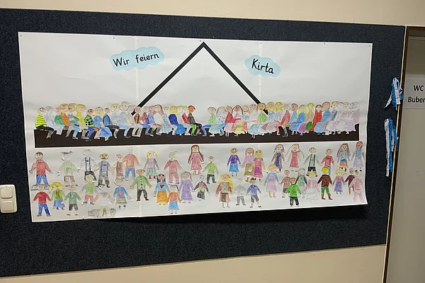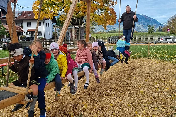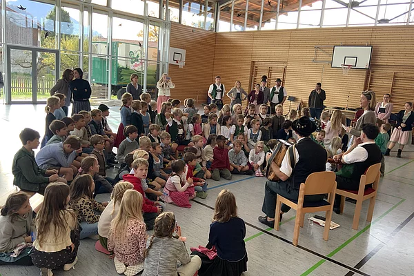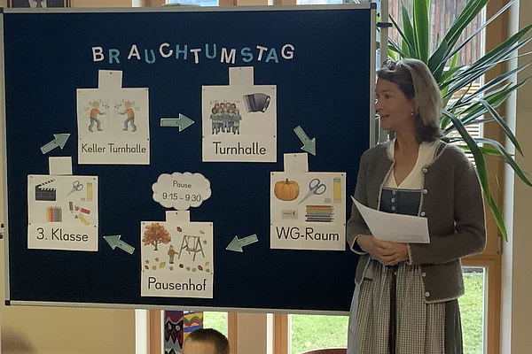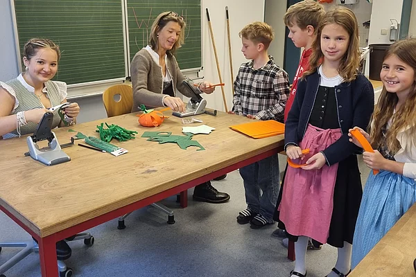 In diesem Jahr war der Kirtamontag wieder unser Brauchtumstag. Statt Deutsch und Mathematik beschäftigten sich die Kinder an verschiedenen Stationen im Schulhaus. Es wurde mit dem Trachtenverein getanzt, Lieder gesungen, Papierkürbisse gebastelt und ein Video angesehen, gefolgt von einer Fragerunde über den Kirchweihmontag. Natürlich war die große Sensation die Kitahutschn im Pausenhof, die den Kindern riesigen Spaß bereitete. Die vielen Kinder, die in Tracht zur Schule kamen, machten den Brauchtumstag noch feierlicher.