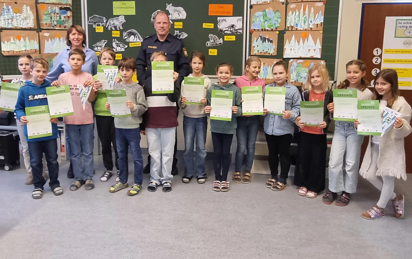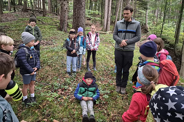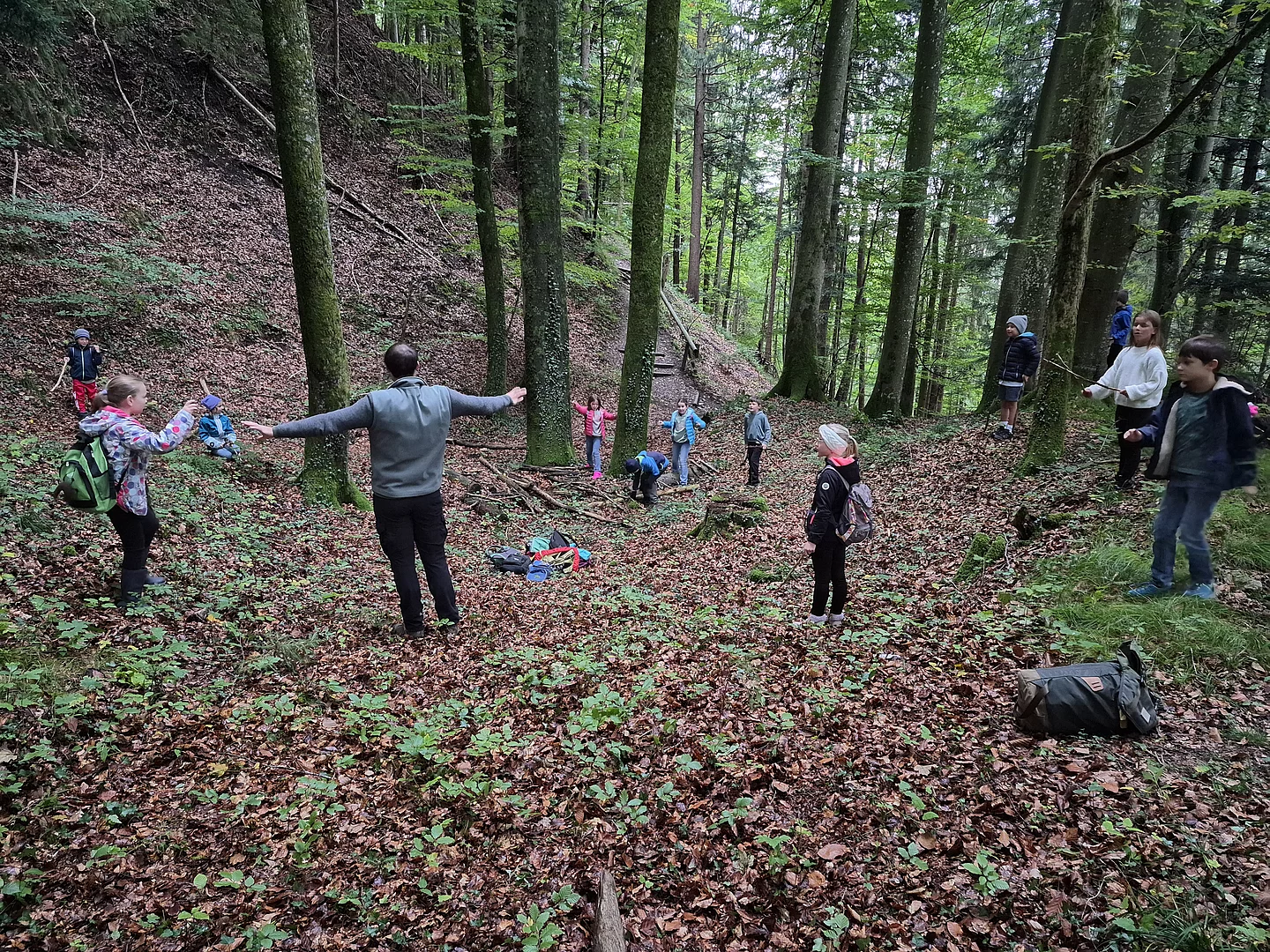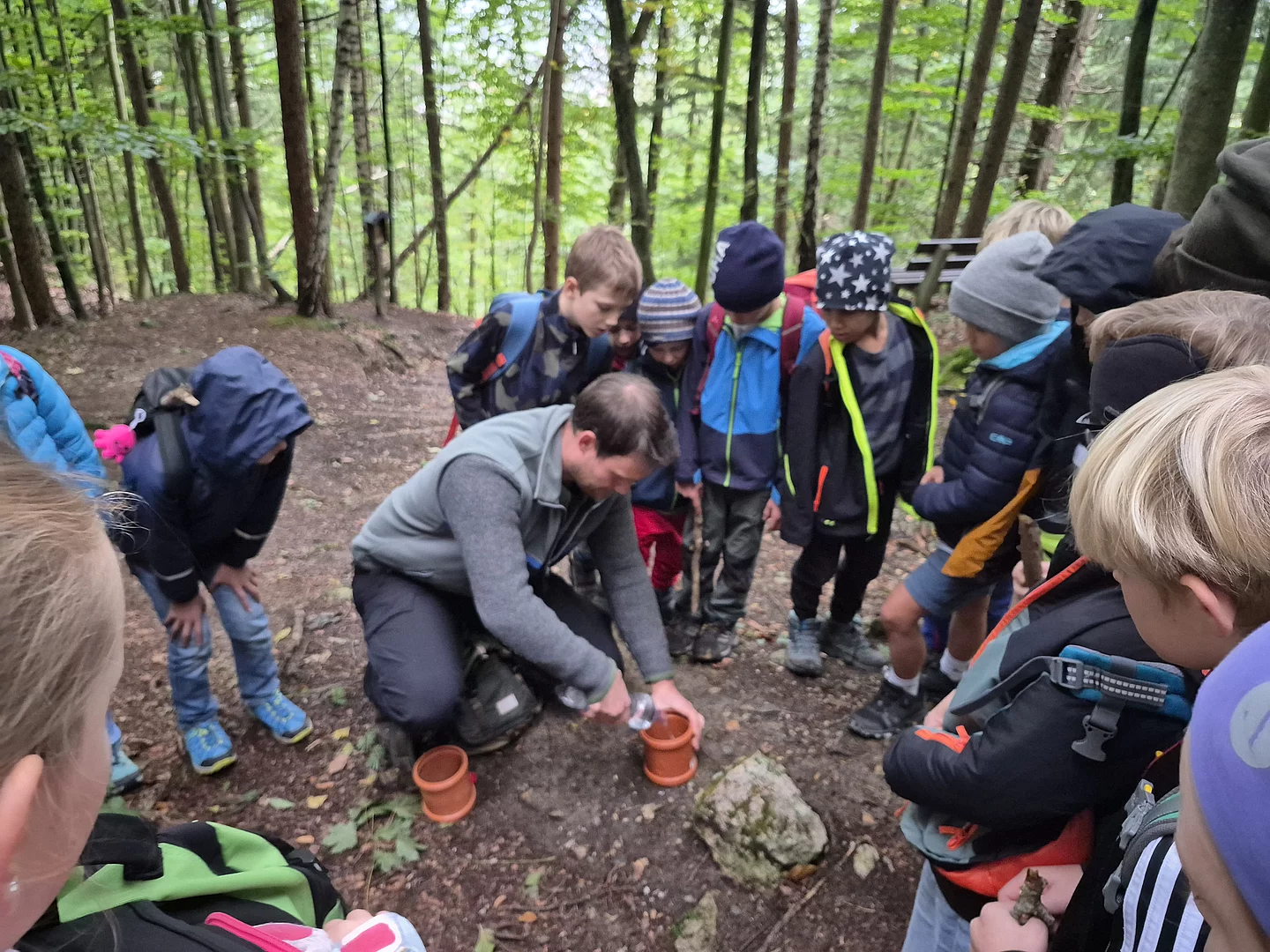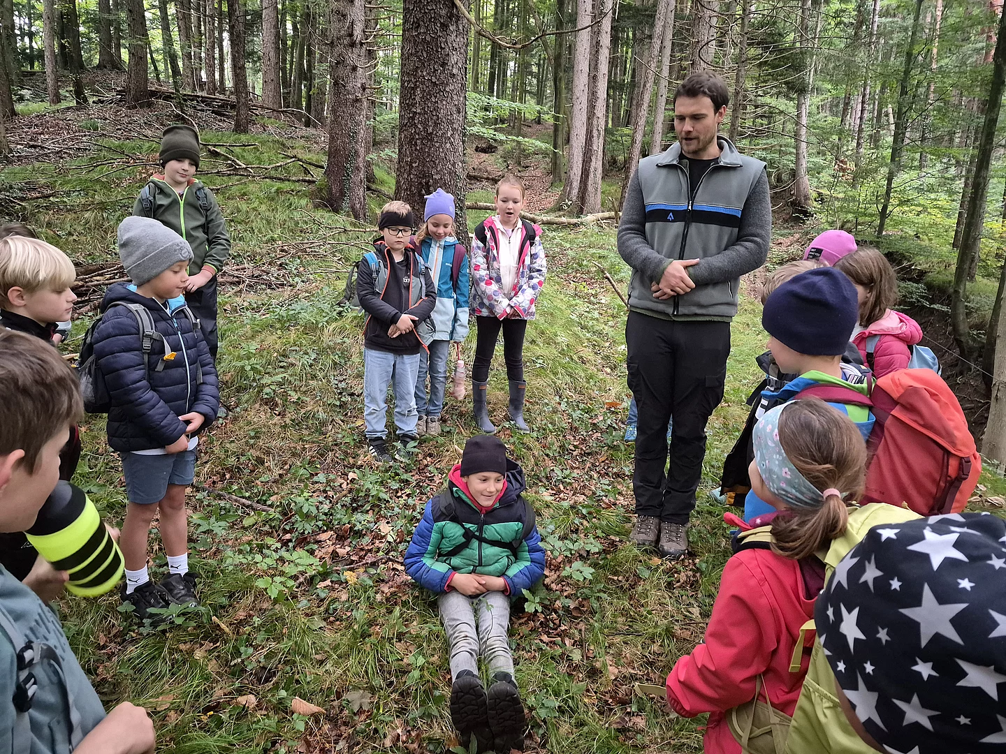 (3. Klasse, 09.10.2025)Passend zum Heimat- und Sachunterricht (Thema „Wald“) durften die Schülerinnen und Schüler der 3. Klasse gemeinsam mit dem Förster Alois Reichenberger drei Stunden im Wald verbringen. Dort bekamen sie nicht nur viele Infos über die Bäume und Tiere des Waldes, sondern Herr Reichenberger überlegte sich auch verschiedene Spiele, um die Bedeutung des Waldes den Kindern zu verdeutlichen. Mit Begeisterung waren die wissbegierigen Schülerinnen und Schüler mit dabei. Leider verging die Zeit viel zu schnell, aber alle Kinder werden sich an die Erlebnisse im Wald noch lange erinnern.