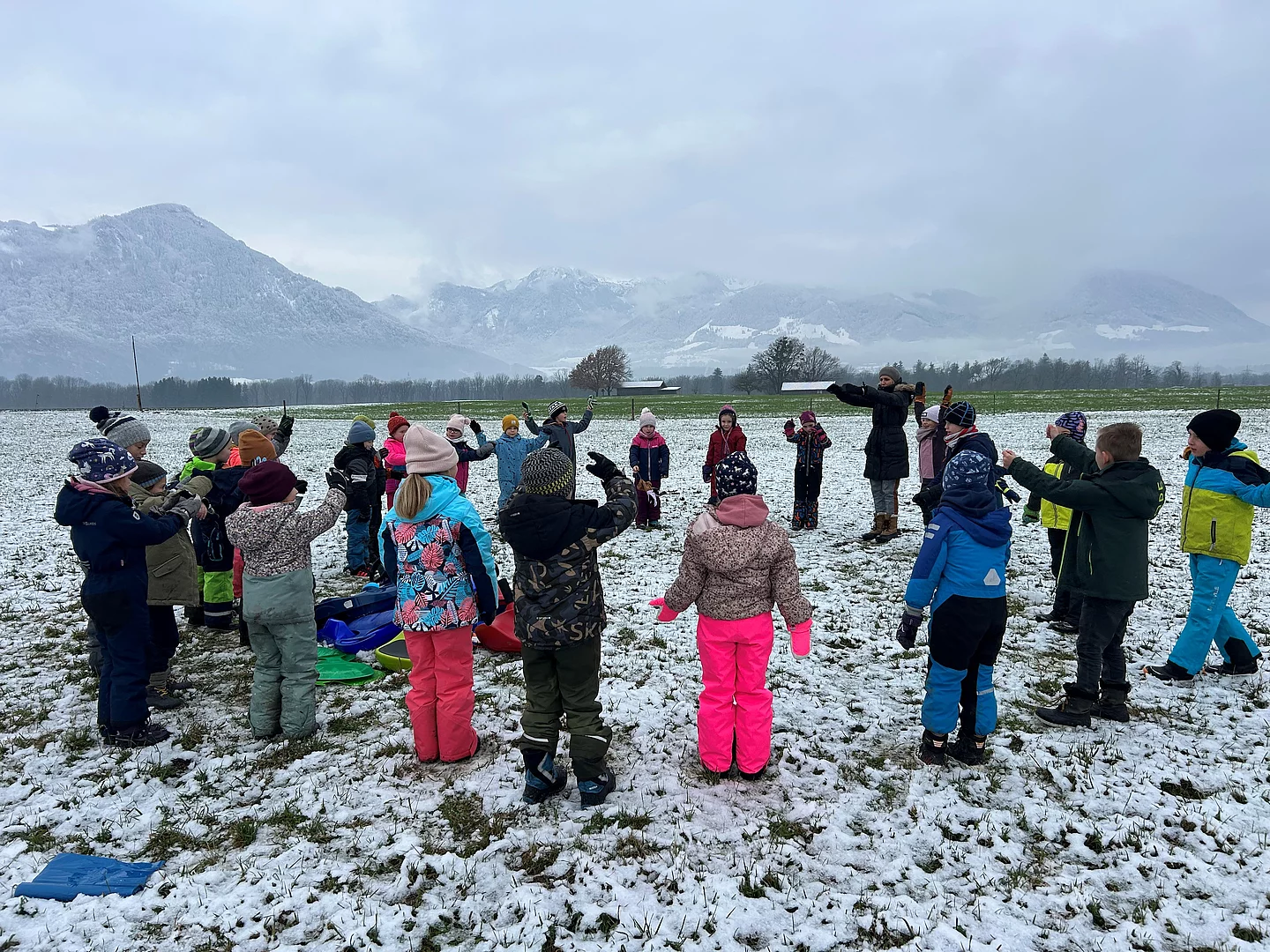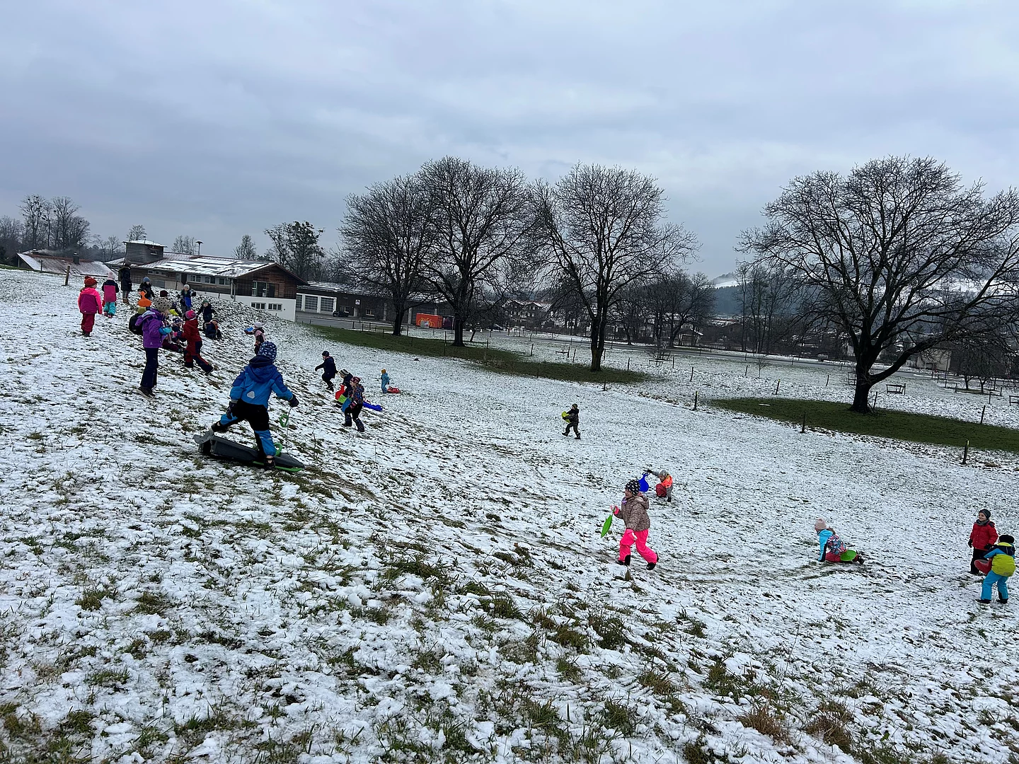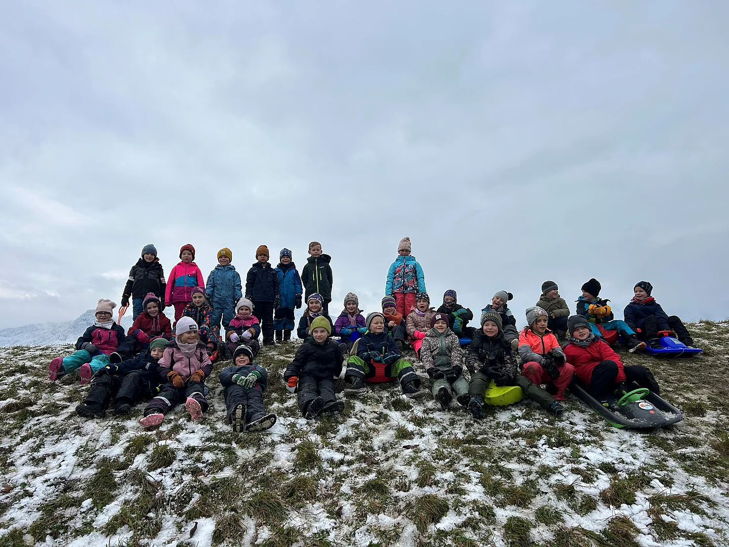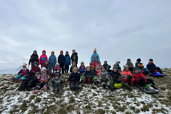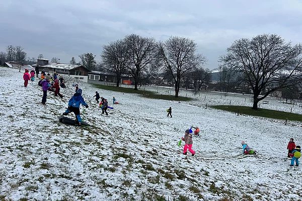 Schlittenfahren der 1. Klassen
