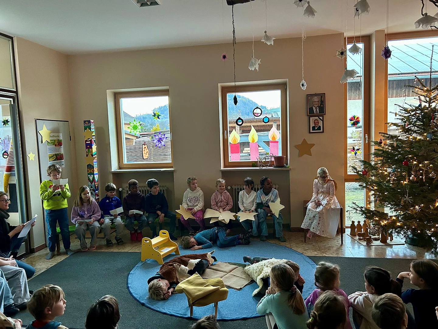 Abwechselnd haben die Klassen weihnachtliche Gedichte, Lieder und Geschichten vorgetragen. Die kleinen Darbietungen brachten die Vorfreude auf Weihnachten in unsere Schule.