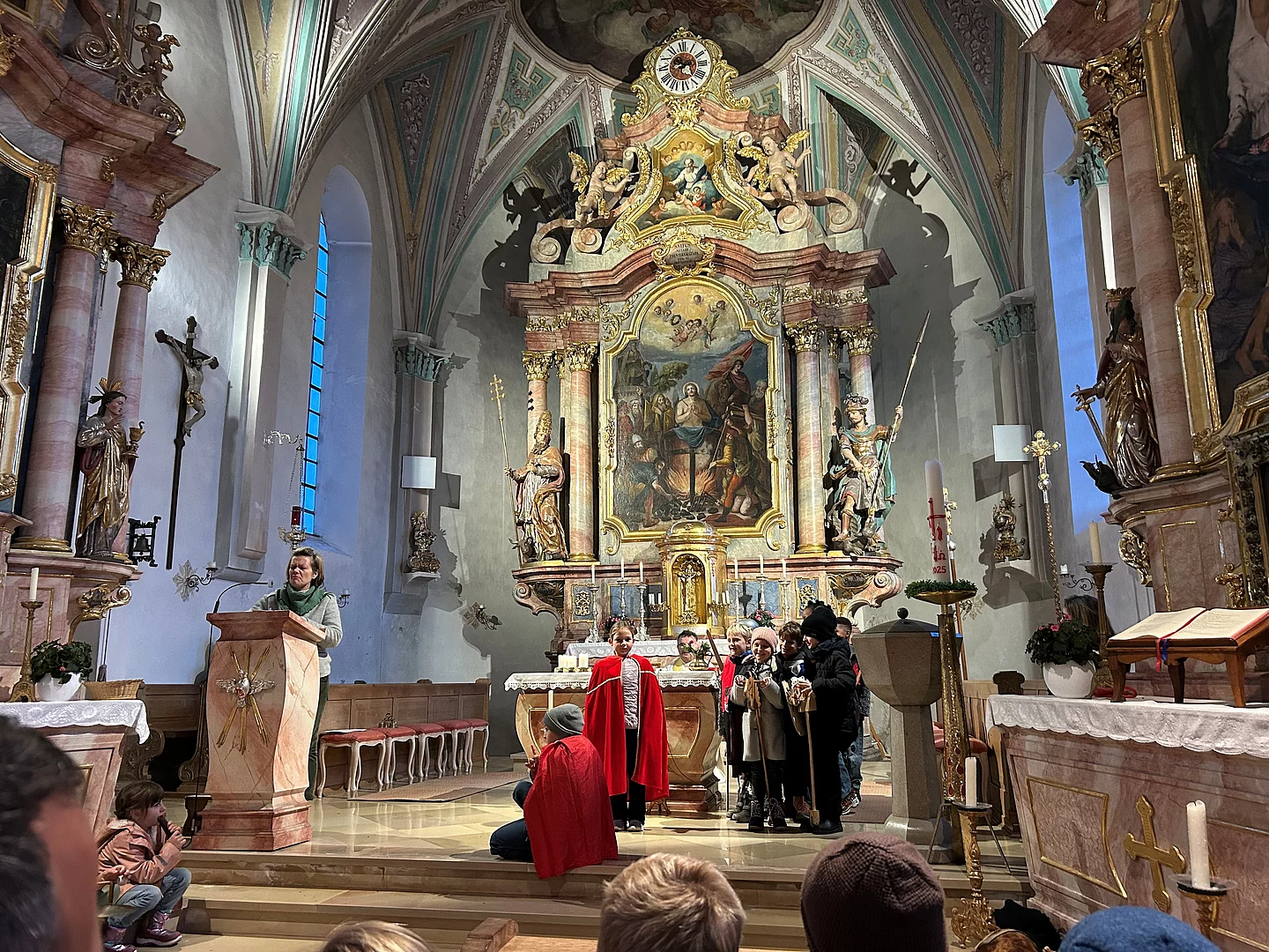 An Sankt Martin erlebten die Schüler und Schülerinnen der Nußdorfer Grundschule ein unvergessliches Martinsfest. Nach einem schönen Gottesdienst, der von einem beeindruckenden St. Martinsspiel der 2. Klasse bereichert wurde, versammelten sich die Kinder mit ihren Eltern und Geschwistern vor der Kirche. Mit leuchtenden Laternen in den Händen, angeführt von einem Pferd mit dem St. Martin zogen sie gemeinsam zur Schule. Dort hatte der Elternbeirat bereits eine stimmungsvolle Atmosphäre geschaffen. Bei warmen Getränken und kleinen Leckereien konnten die Familien den Abend in geselliger Runde ausklingen lassen.