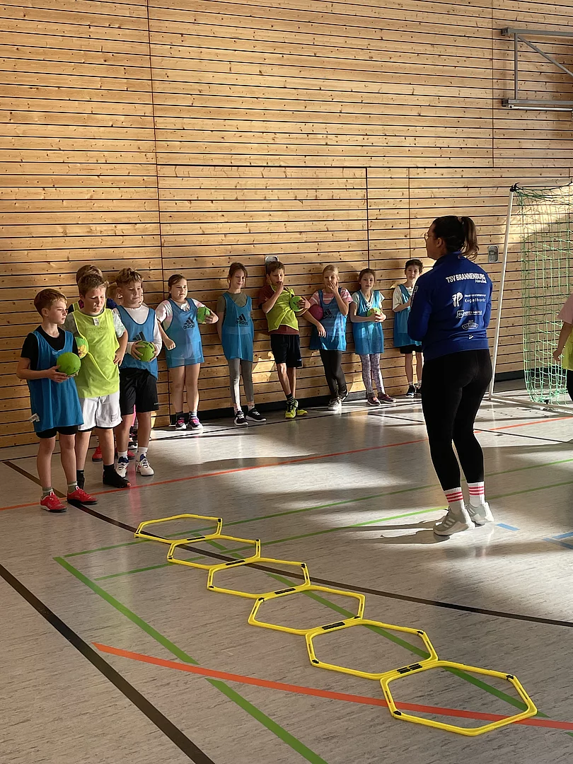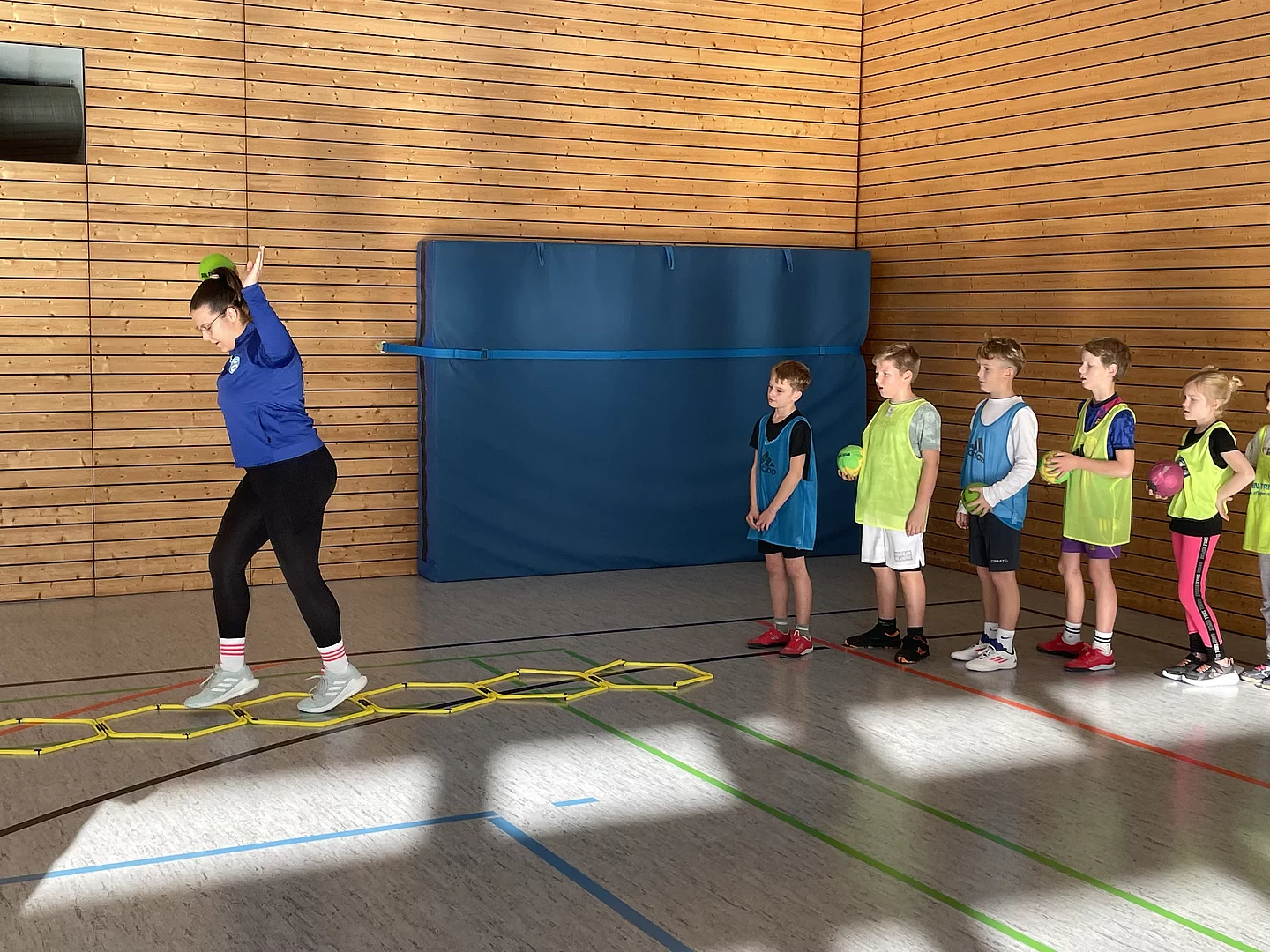 Rund 40 Kinder waren an diesem Vormittag mit großem Eifer dabei. Auf spielerische Art und Weise wurden grundlegende Elemente des Handballs geübt: Fangen, Passen, Werfen und Tippen standen im Mittelpunkt. Die abwechslungsreichen Übungen sorgten für viel Bewegung, Erfolgserlebnisse und strahlende Gesichter. Zum Abschluss durfte natürlich ein kleines Handballspiel nicht fehlen – und spätestens da zeigte sich: Die Kids waren mit vollem Einsatz und echter Begeisterung dabei.
